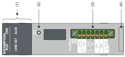 (3) 傳送線連接端子排: 是AnyWireASLINK的連接端子排。