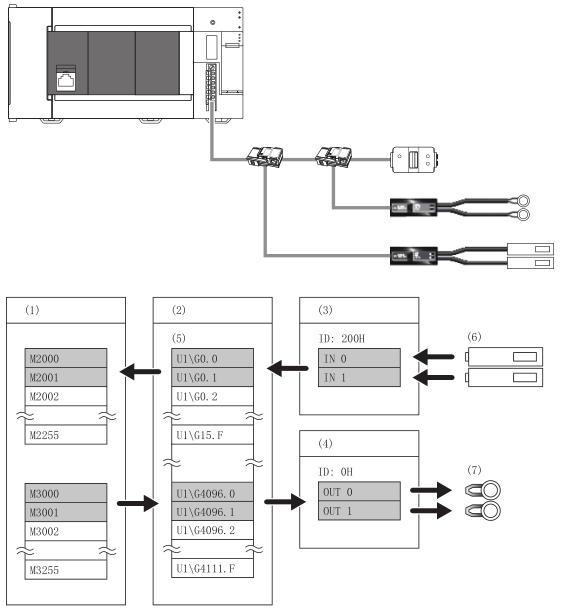 FX5-ASL-M與從站模塊之間進行輸入輸出數(shù)據(jù)交換。