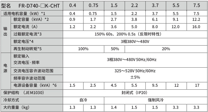 *1 適用電機(jī)表示使用三菱標(biāo)準(zhǔn)4極電機(jī)時(shí)的最大適用容量。