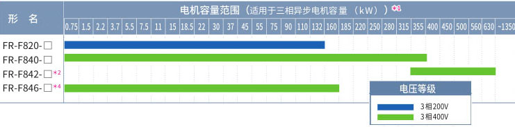 *2 整流器分離型。需配合整流器單元(FR-CC2(-P))或高功率因數(shù)整流器(FR-HC2)使用。