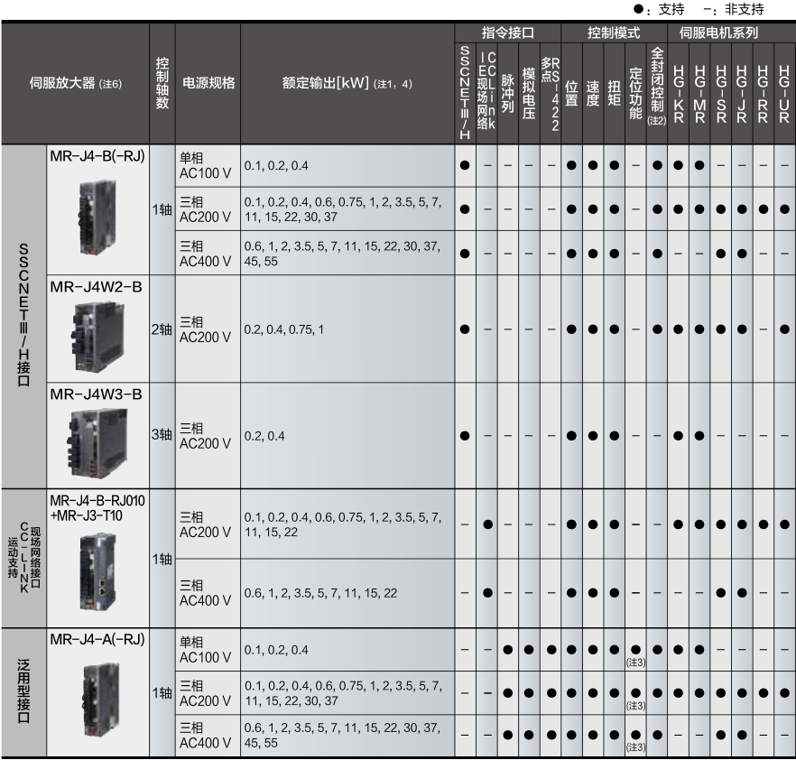 注5) 運(yùn)動(dòng)對(duì)應(yīng)CC-Link IEField網(wǎng)絡(luò)接口伺服放大器僅為MR-J4-_B-RJ010.