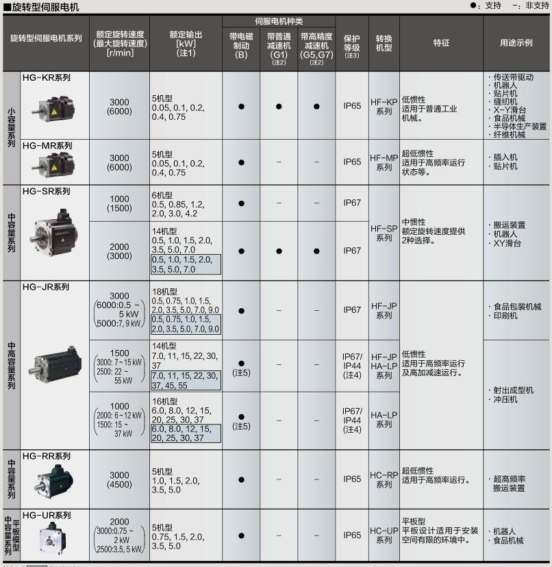 注1)、7kW以下的伺服放大器中不含內(nèi)置動(dòng)力制動(dòng)器的型號(hào)。使用不含